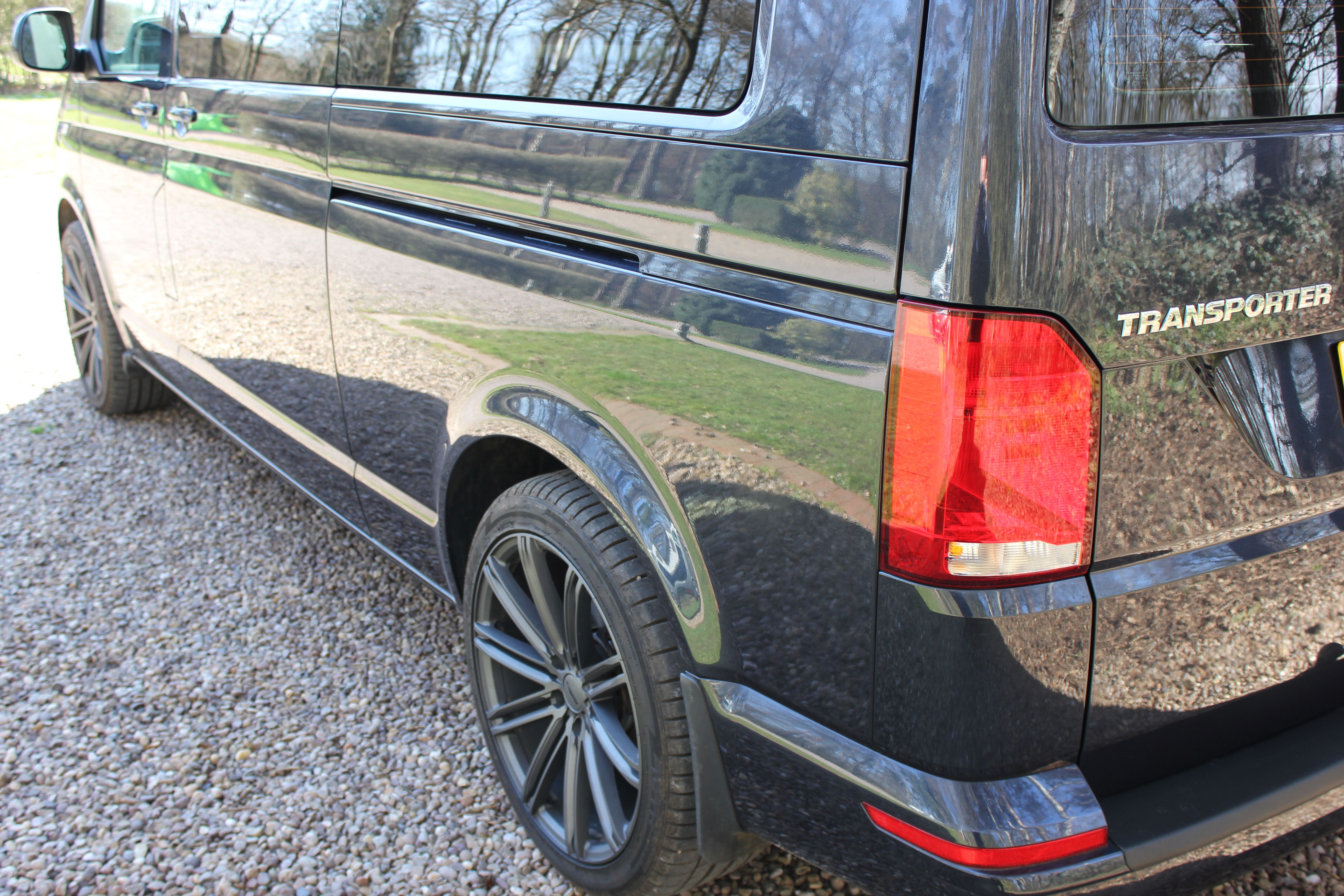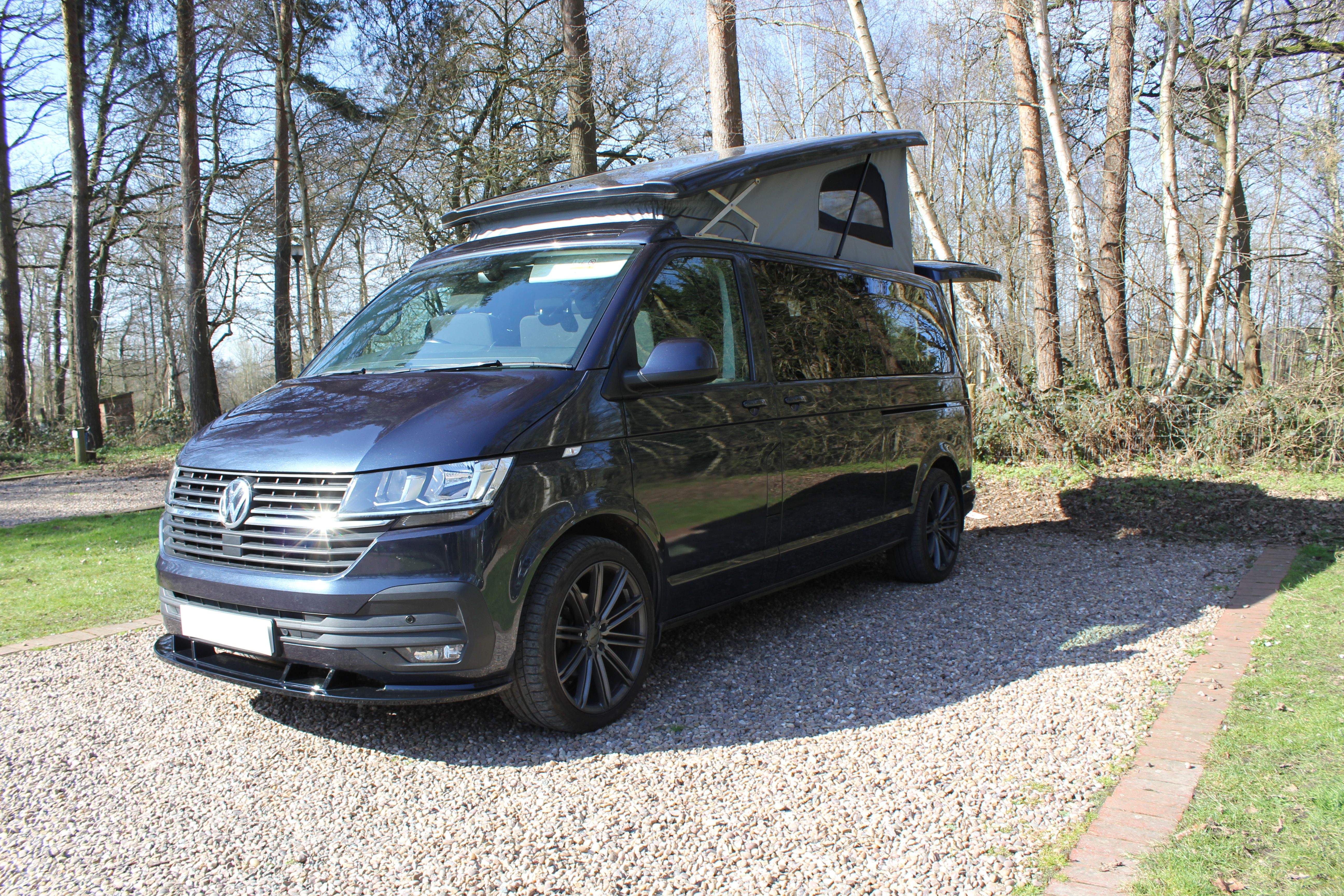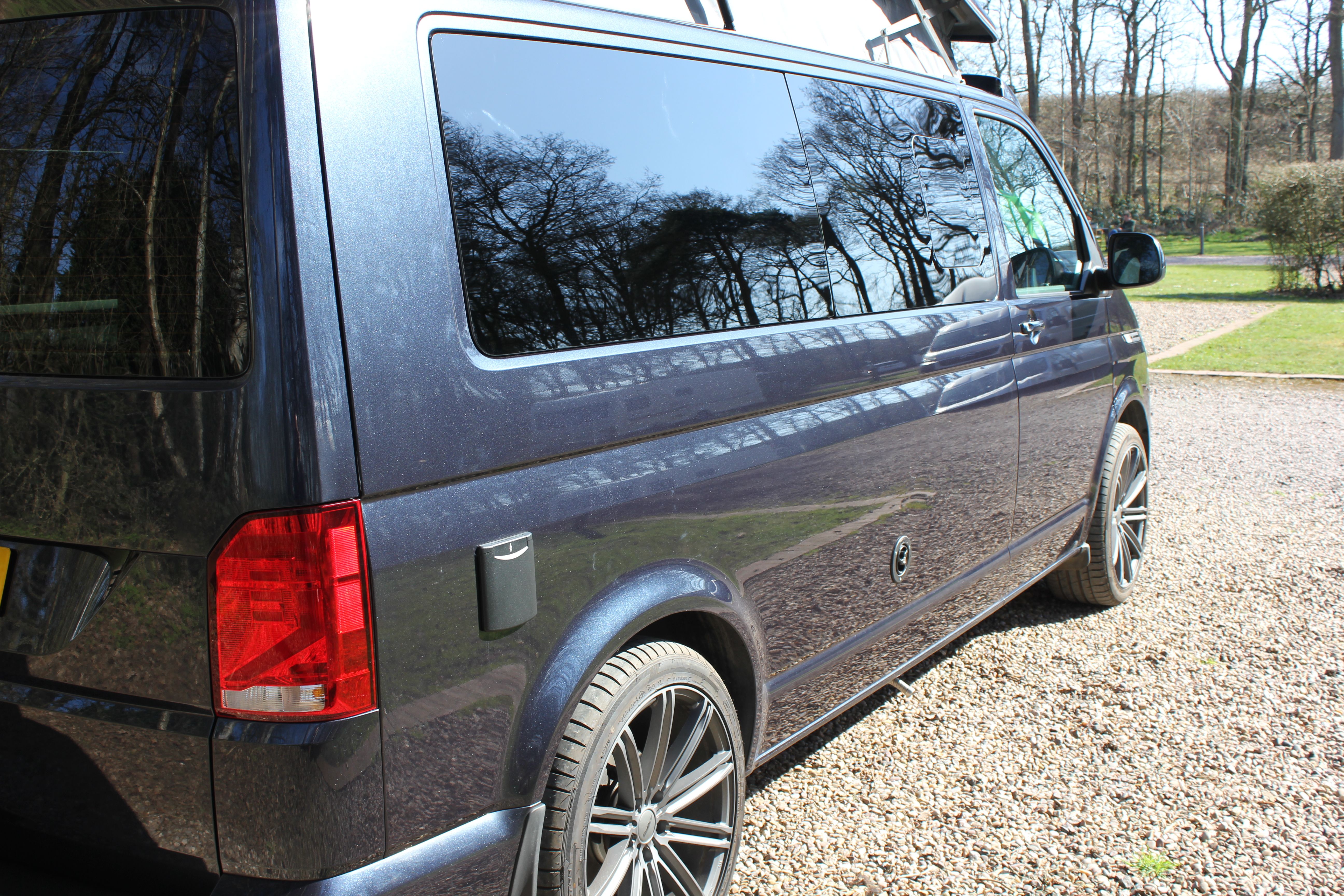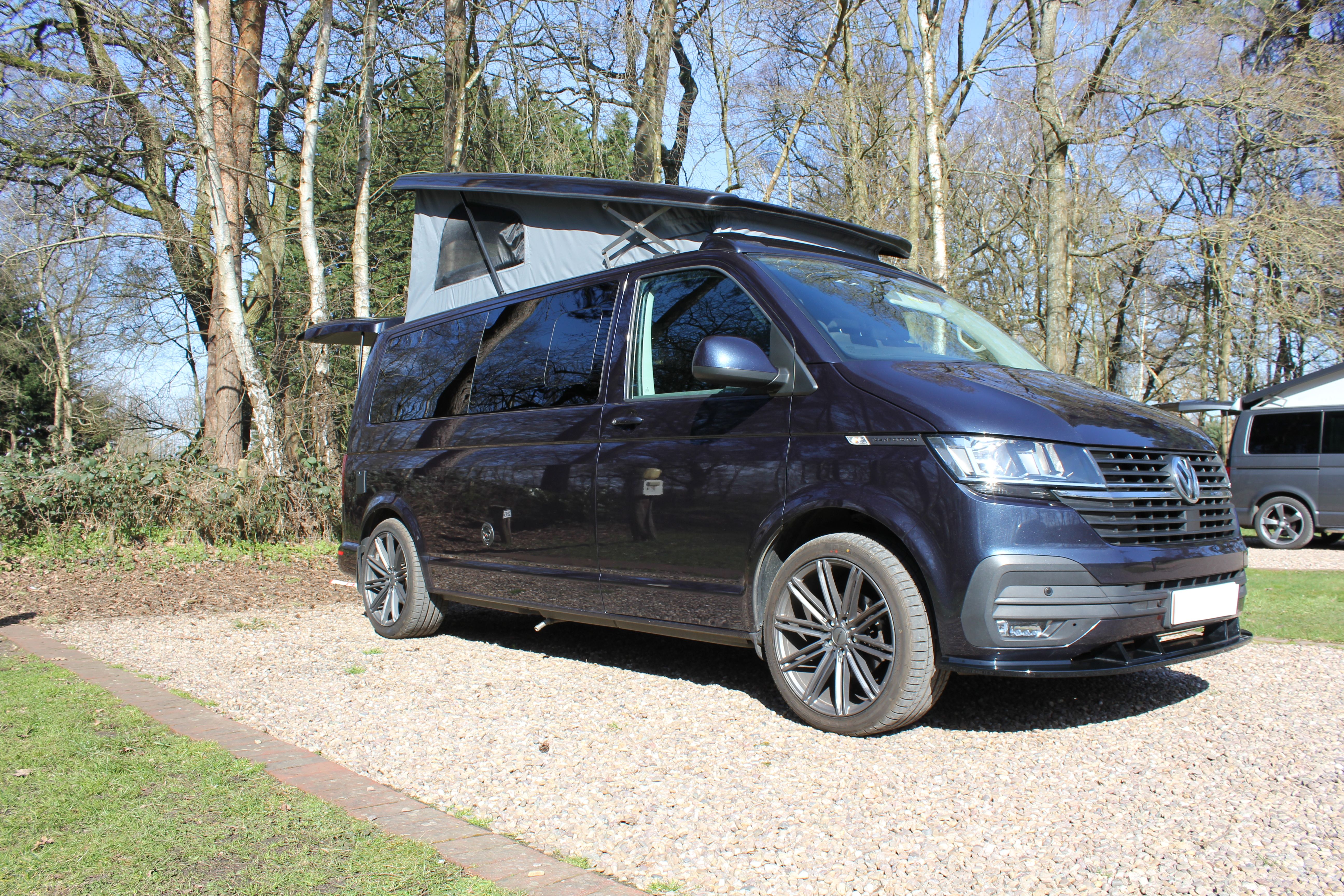 LWB VW T6.1 DSG self-sufficient campervan, complete with brand new coast2coast Campers Harvington rear end kitchen conversion and fitted flush toilet.