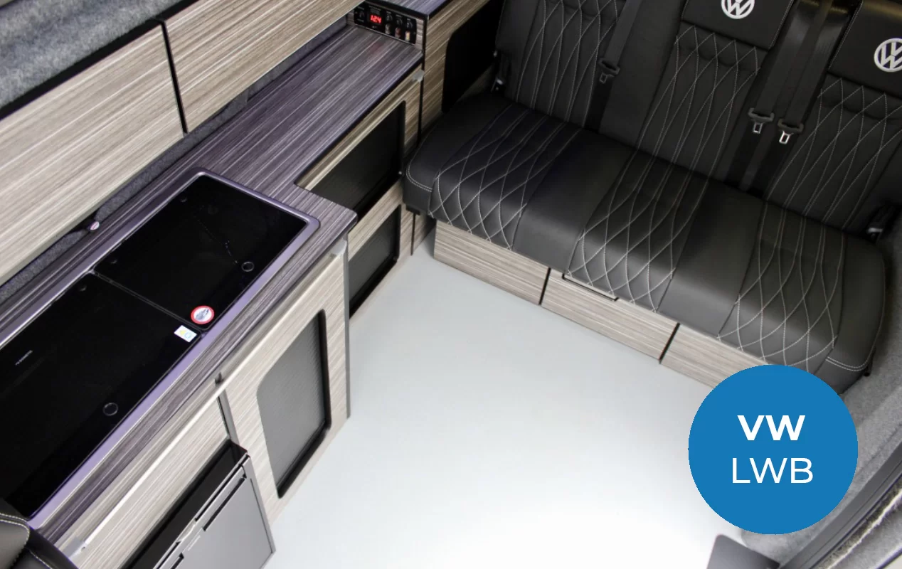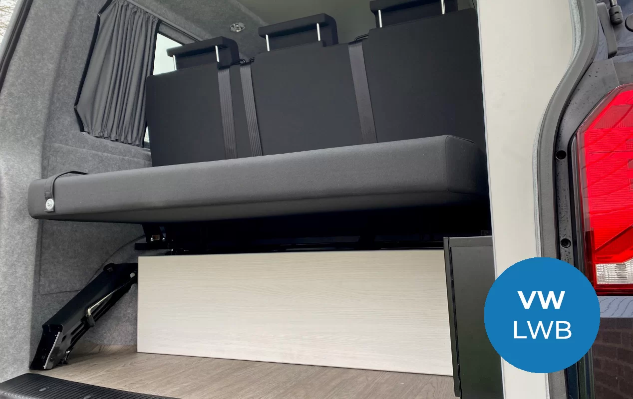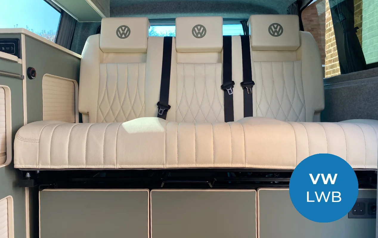 Our Brierywood camper conversion layout boasts a larger premium M1 tested 3-seater 129 RIB Altair bed system with an integrated slider and headrests, as standard, designed in response to a growing demand for a larger sleeping space and up to six travelling seats.