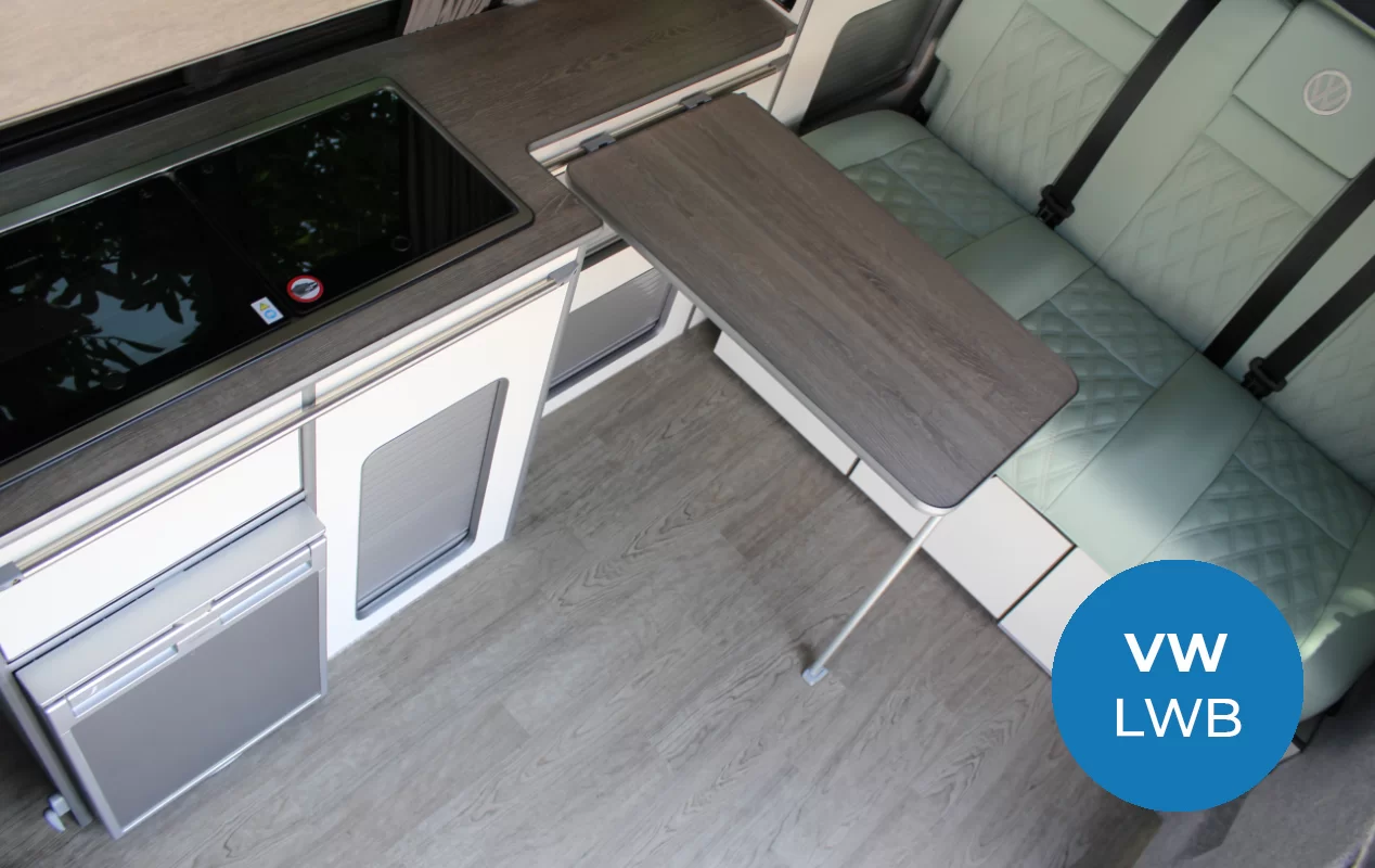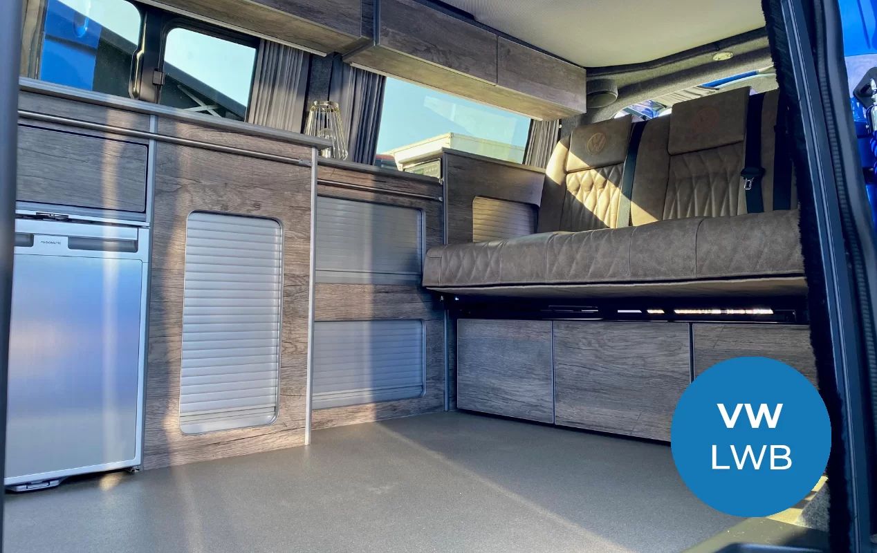 This includes extensive bodywork and interior design in materials to create a bespoke look. This VW campervan design will stand out in a crowd and not suitable for those who do not want to be noticed.