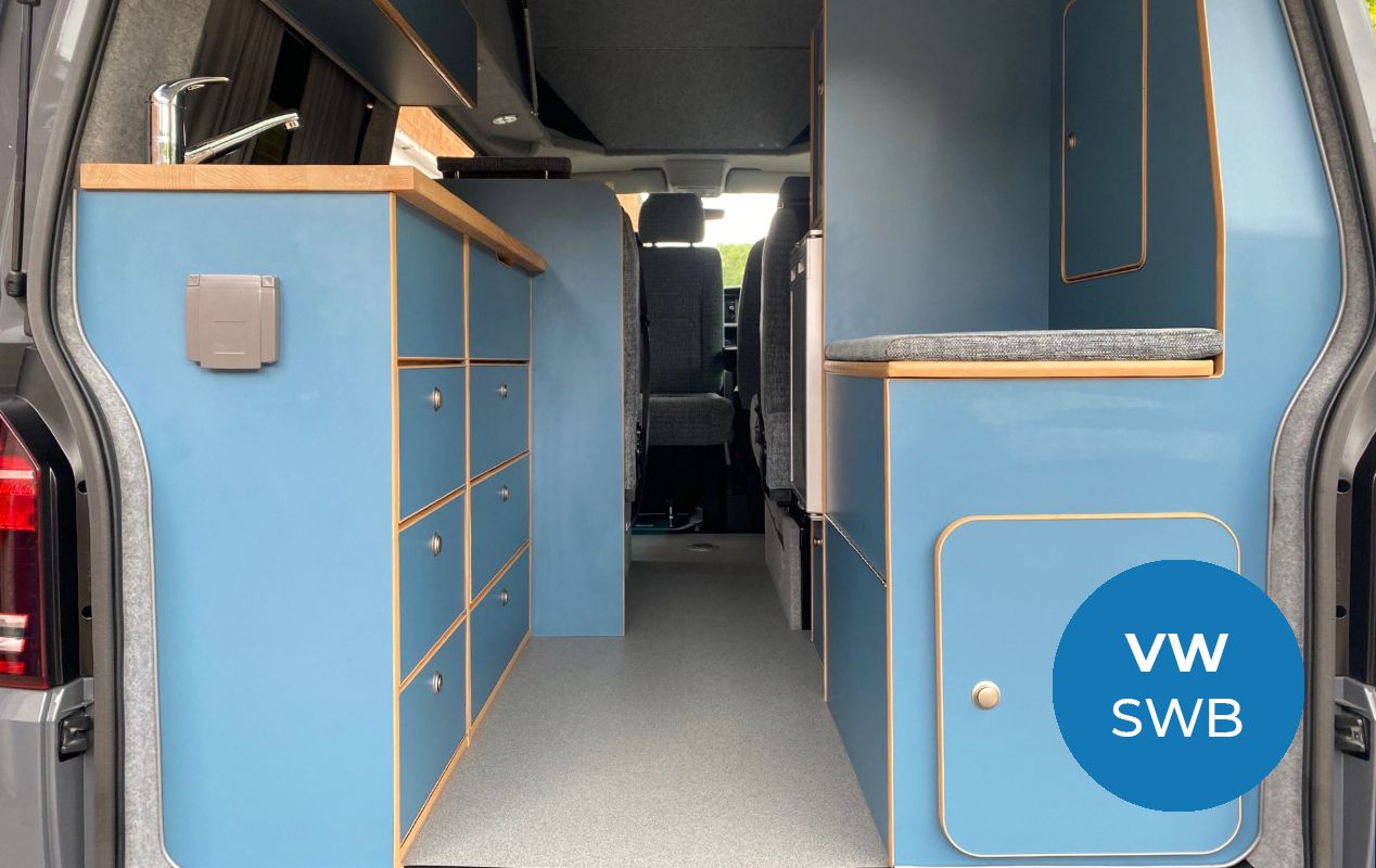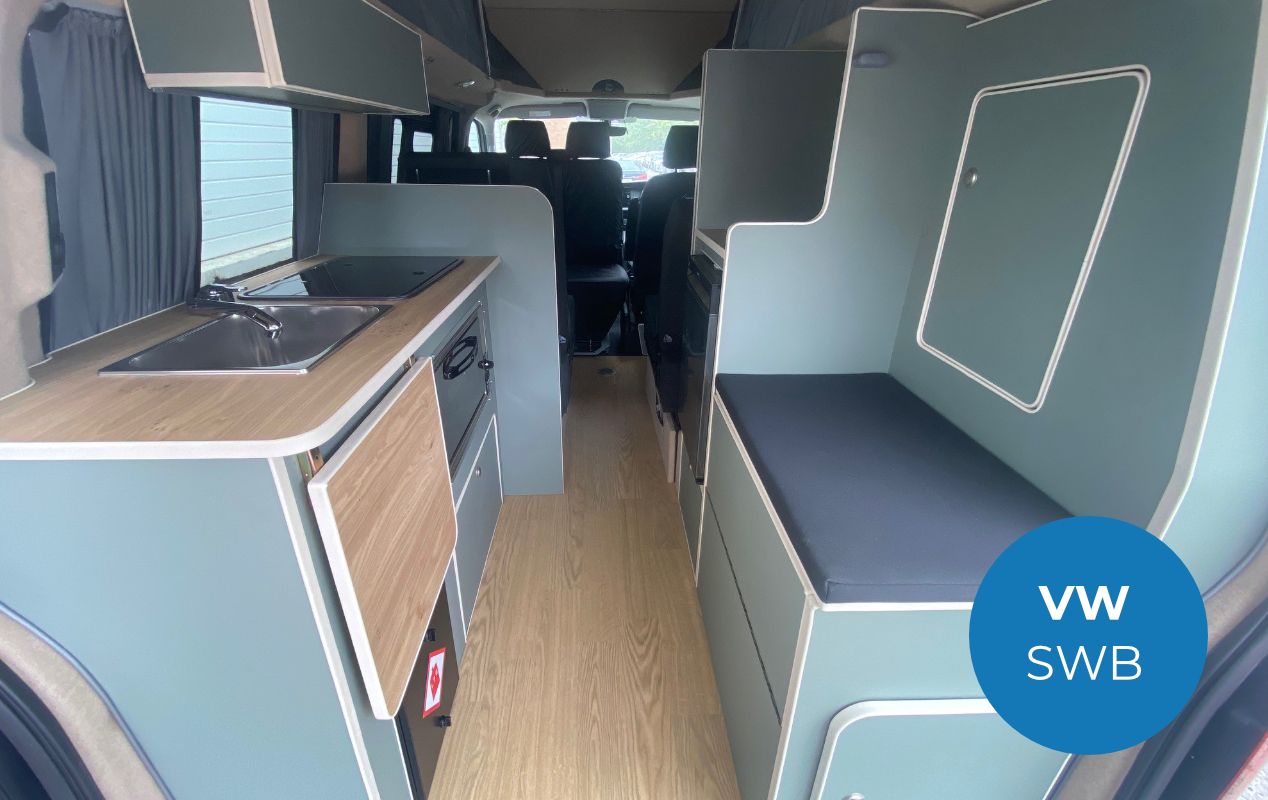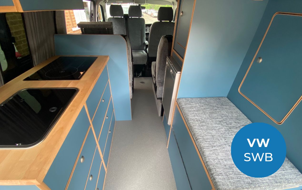 Our FREE custom camper van conversion build service means that your custom designed campervan can cost the same as buying one from stock. You can expect to pay from £50,000.00 for a complete VW Harvington Campervan.
