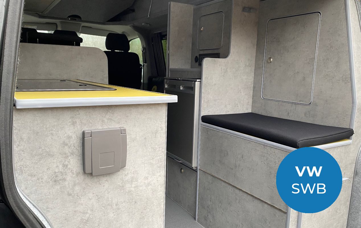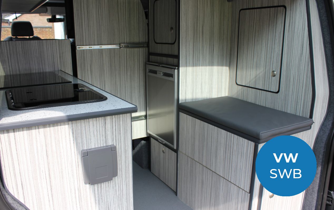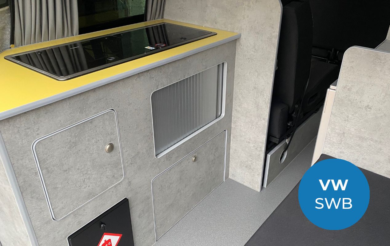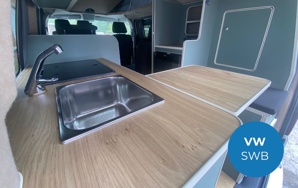 Our FREE custom camper van conversion build service means that your custom designed campervan can cost the same as buying one from stock. You can expect to pay from £50,000.00 for a complete VW Harvington Campervan.