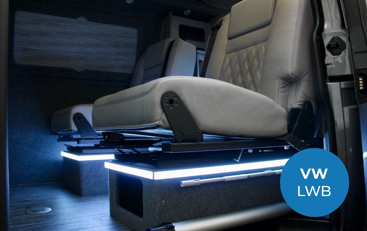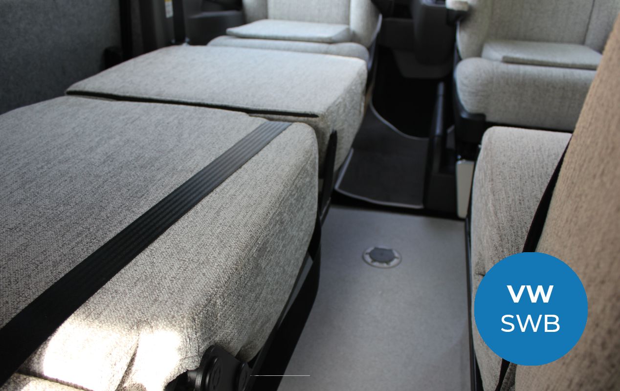 Drawing for illustration purposes. Double or single passenger seat options for all conversion layouts.