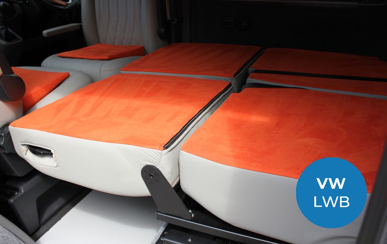 • 2 single Neptune RIB M1 tested beds with sliders and integrated headrests, folding and sliding to create 2 single beds or 1 double bed, upholstered in VW trim